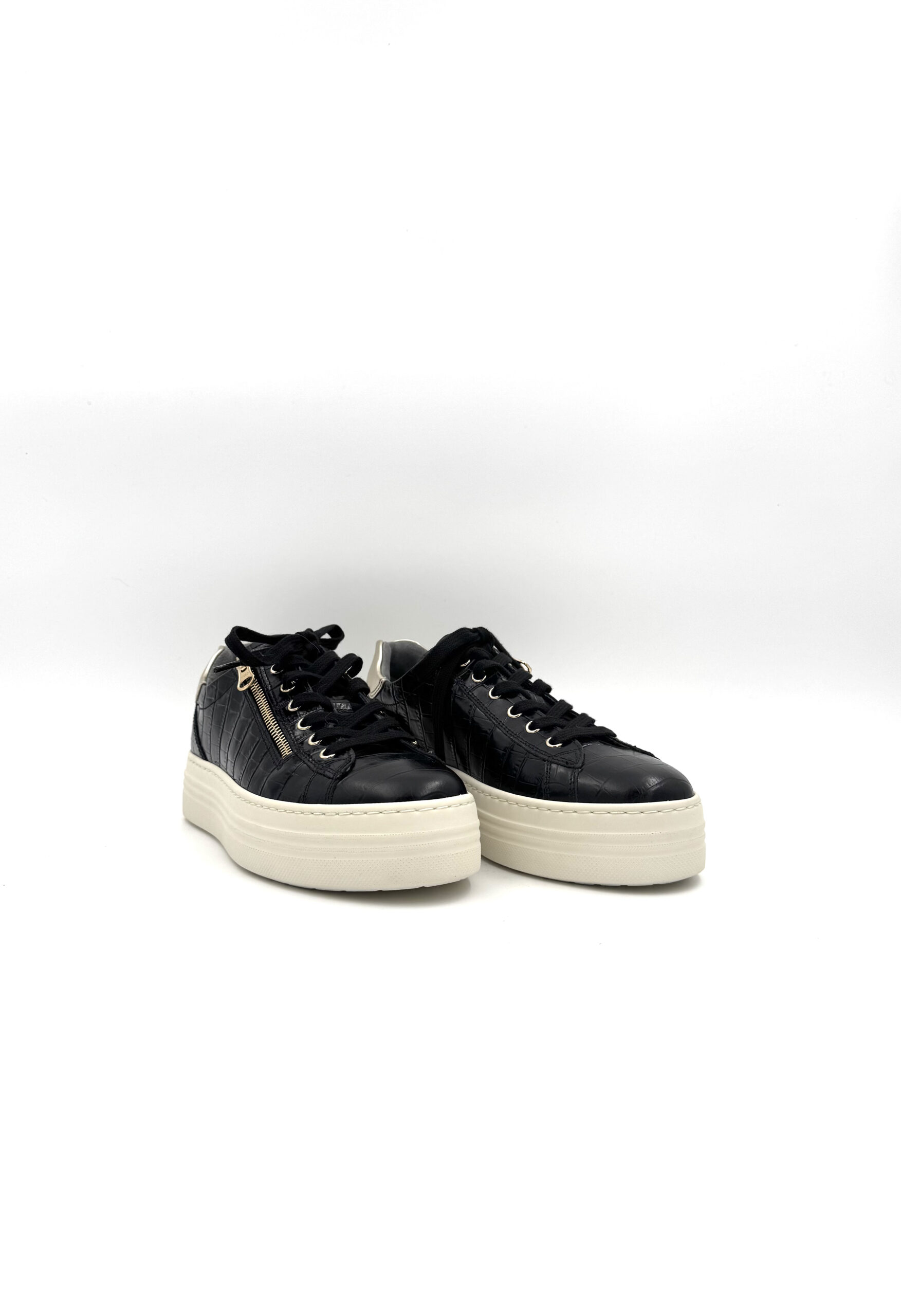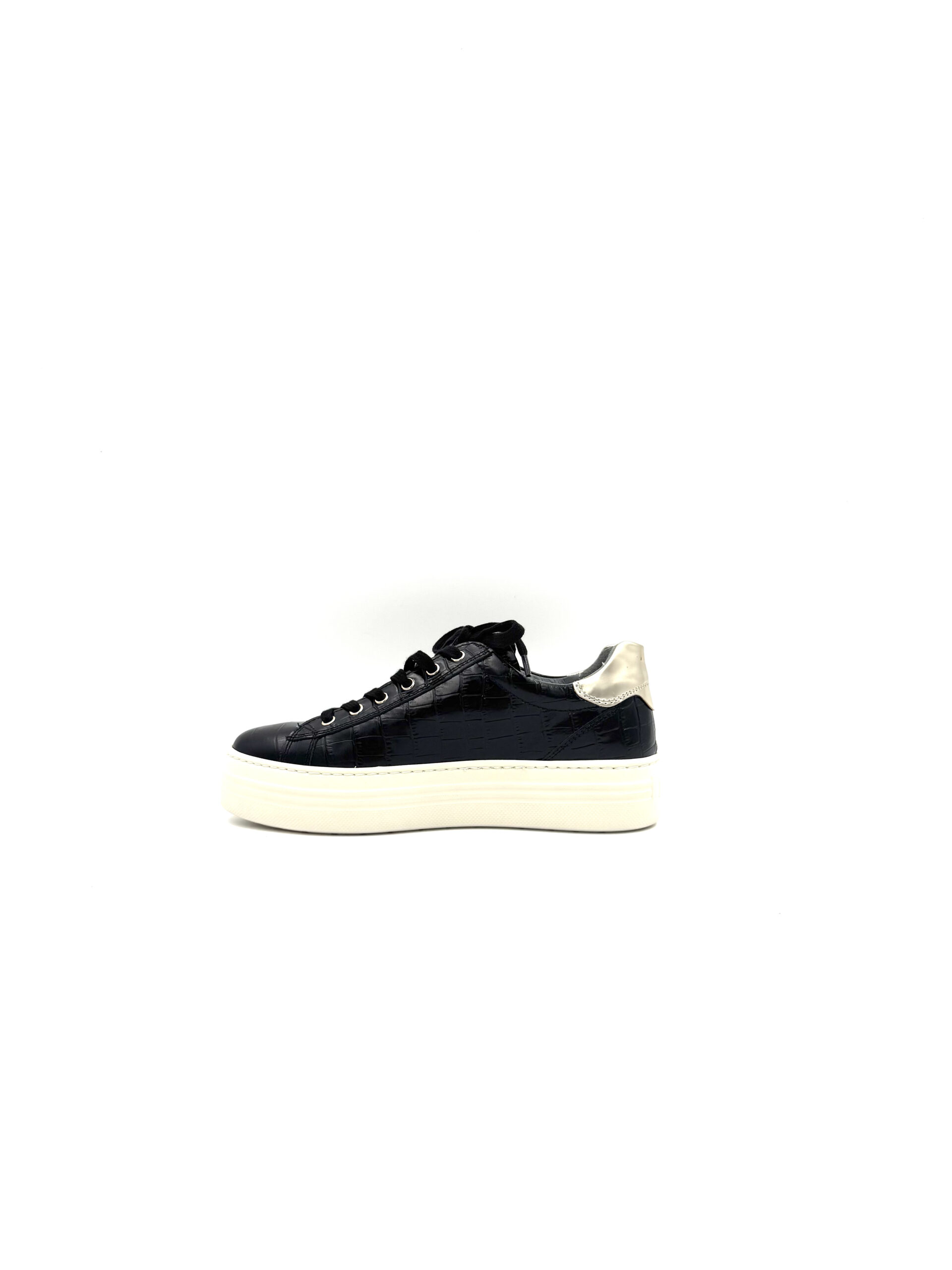 Impossible de passer à côté de cette basket basse signée NeroGiardini. Avec sa tige en cuir et synthétique et son coloris noir, elle se porte facilement au quotidien. Doublée en cuir, on se sent bien du matin au soir dans la I514186D. On la retrouve ici féminisée par un talon de 4 cm. Mais plus que d’en parler, le mieux est encore de l’essayer…